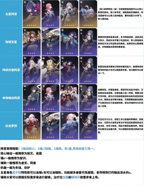 崩坏星穹铁道中的角色被分为不同的职业,每个职业中的角色都有其独特的定位,包括主C、辅助、坦克和奶妈等等。但是还有玩家不知道崩坏星穹铁道全角色的定位,以下是崩坏星穹铁道所有角色的定位介绍,希望对各位玩家有所帮助。